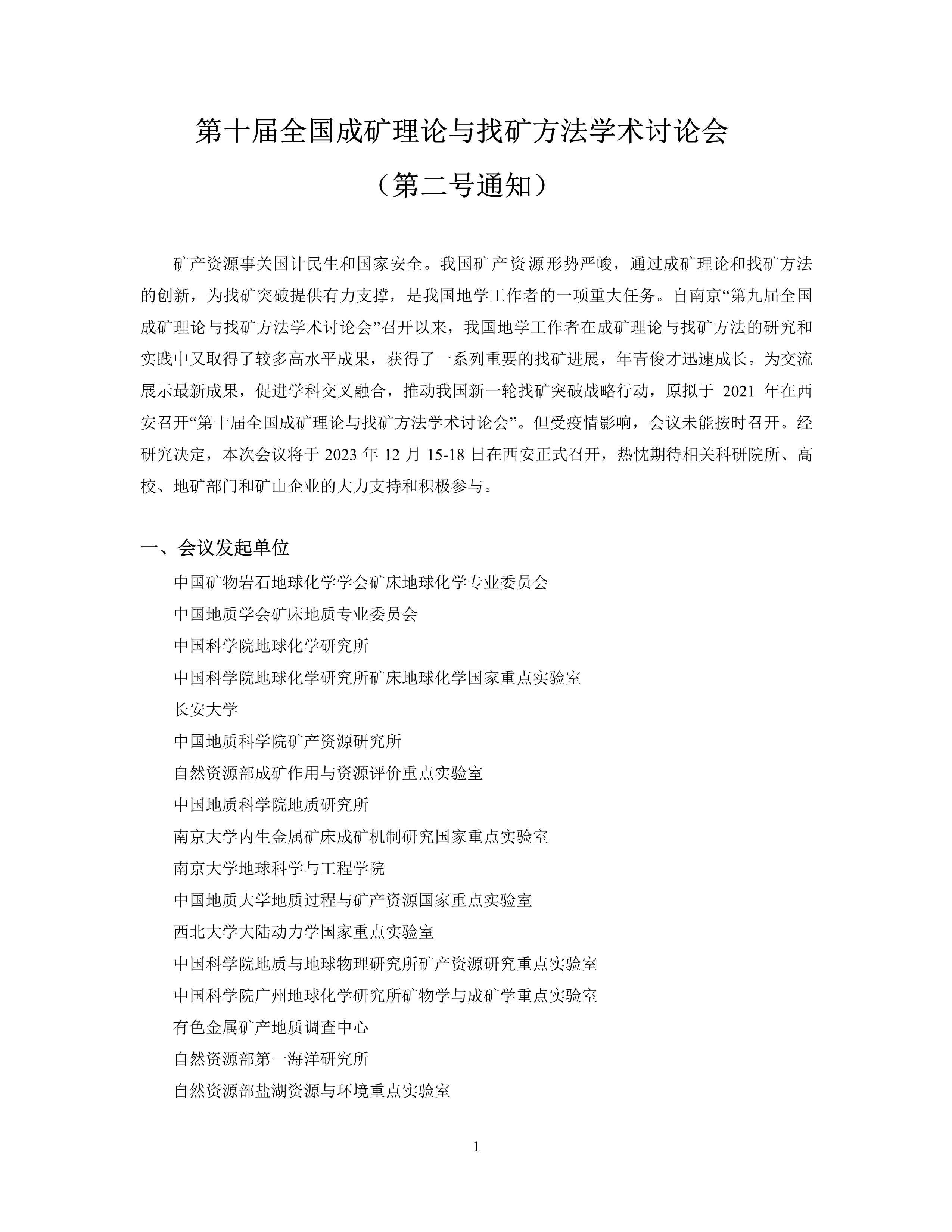 第十届全国成矿理论与找矿方法学术讨论会将于12月在西安正式召开